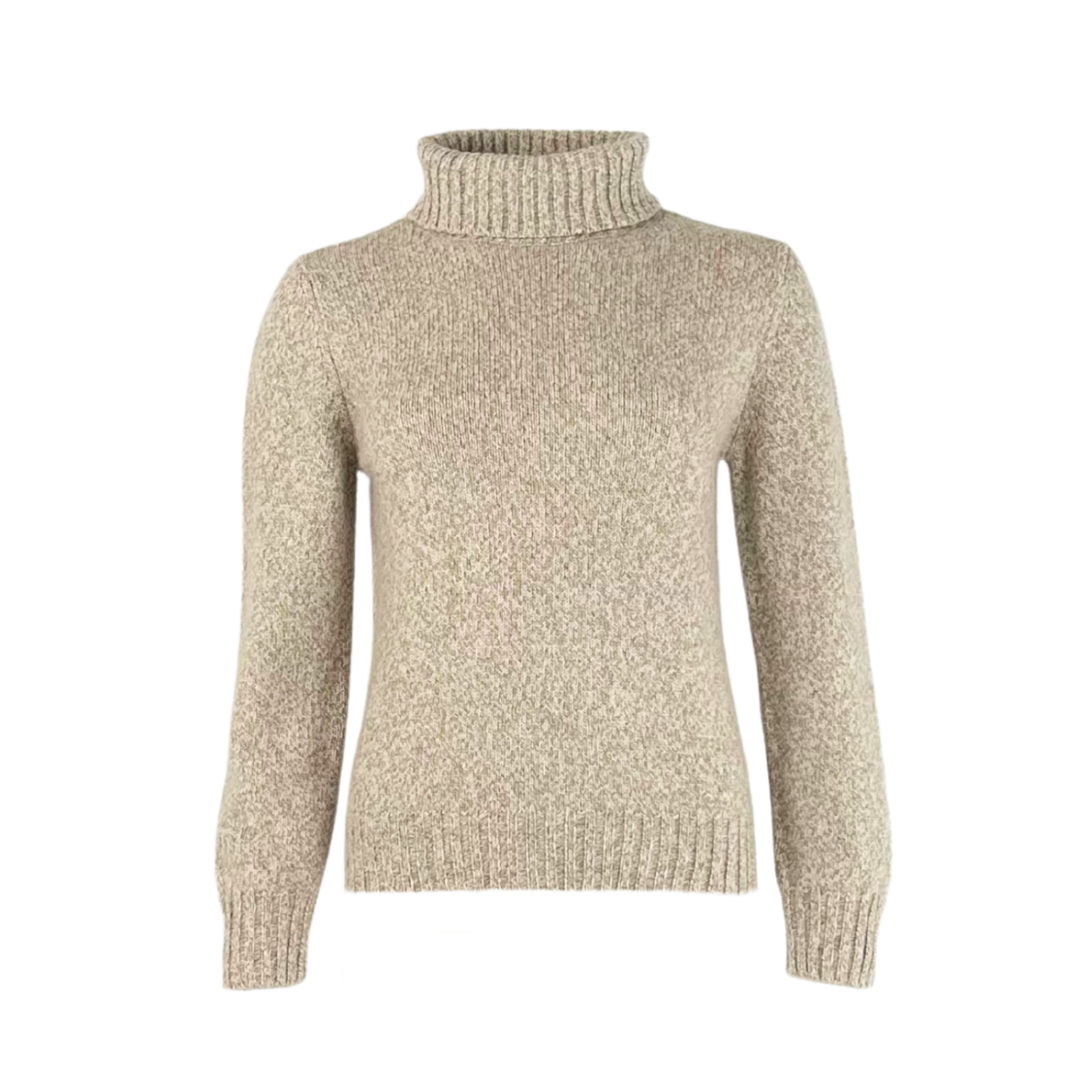 Dolcevita pesante in cashmere e lana dalla vestibilità regolare e dal taglio leggermente corto. Il filato utilizzato mischia 3 fili di colori diversi per dare un effetto melange unico.