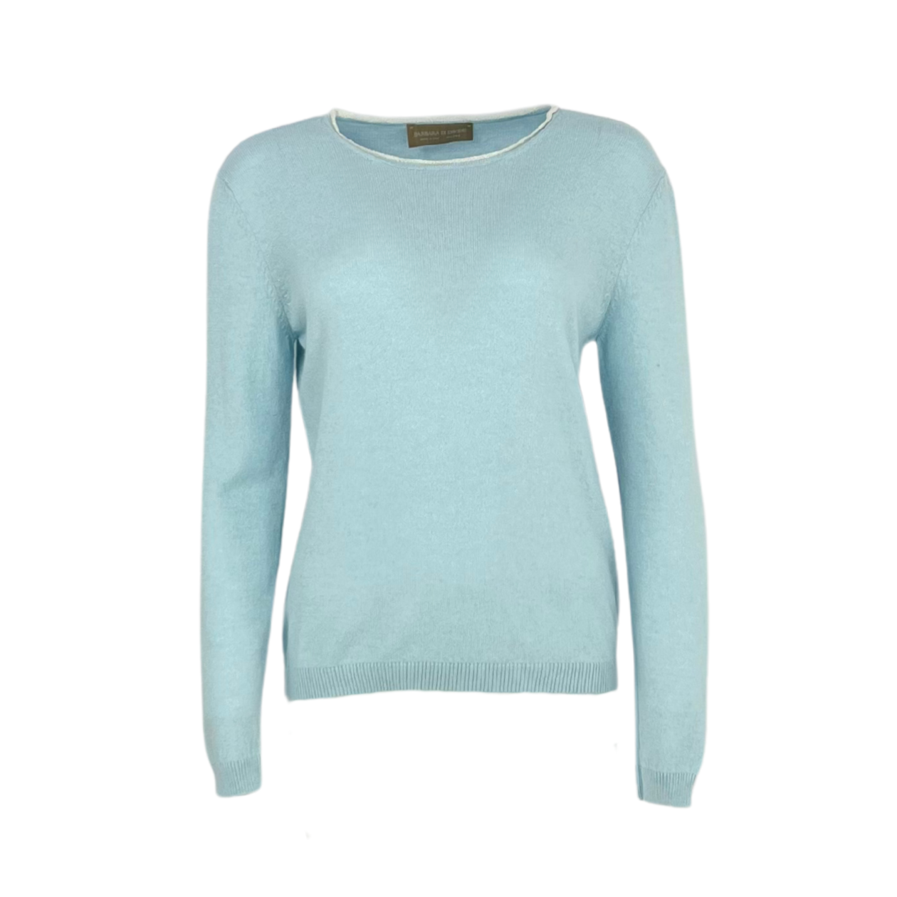 Girocollo in cashmere dal peso medio e dalla vestibilità comfort, viene impreziosito sul collo da un dettaglio in lurex a contrasto. Il capo è disponibile in una prima taglia (S/M) e in una seconda taglia (L/XL).